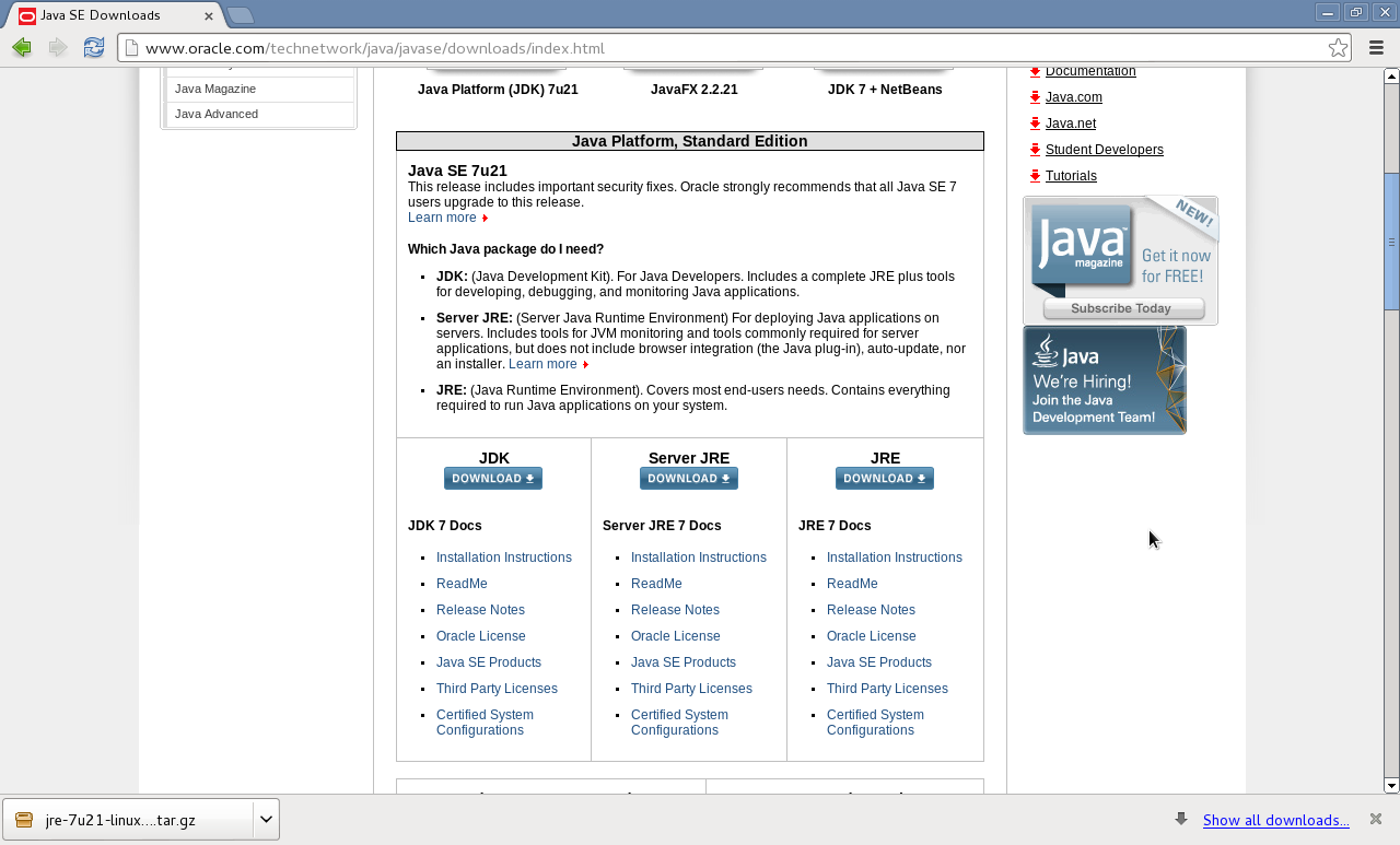 La presente guía de instalación está escrita utilizando openSuSe, jdk_7u21 y jre_7u21. Los nombres de los directorios podrían variar según el idioma de cada sistema operativo. El procedimiento ha sido probado en openSuSE 12.2, Ubuntu 11.10, CentOS 6, Fedora 20 funcionando a la perfección en todos los sistemas operativos. No debería haber ningún problema de instalación con los otros sistemas operativos similares a los evaluados.